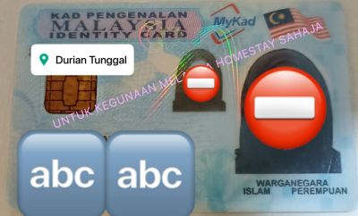 Provide identification card (IC) copy before check-in. Please put note “for Melaqua Homestay purpose only”. (Example)